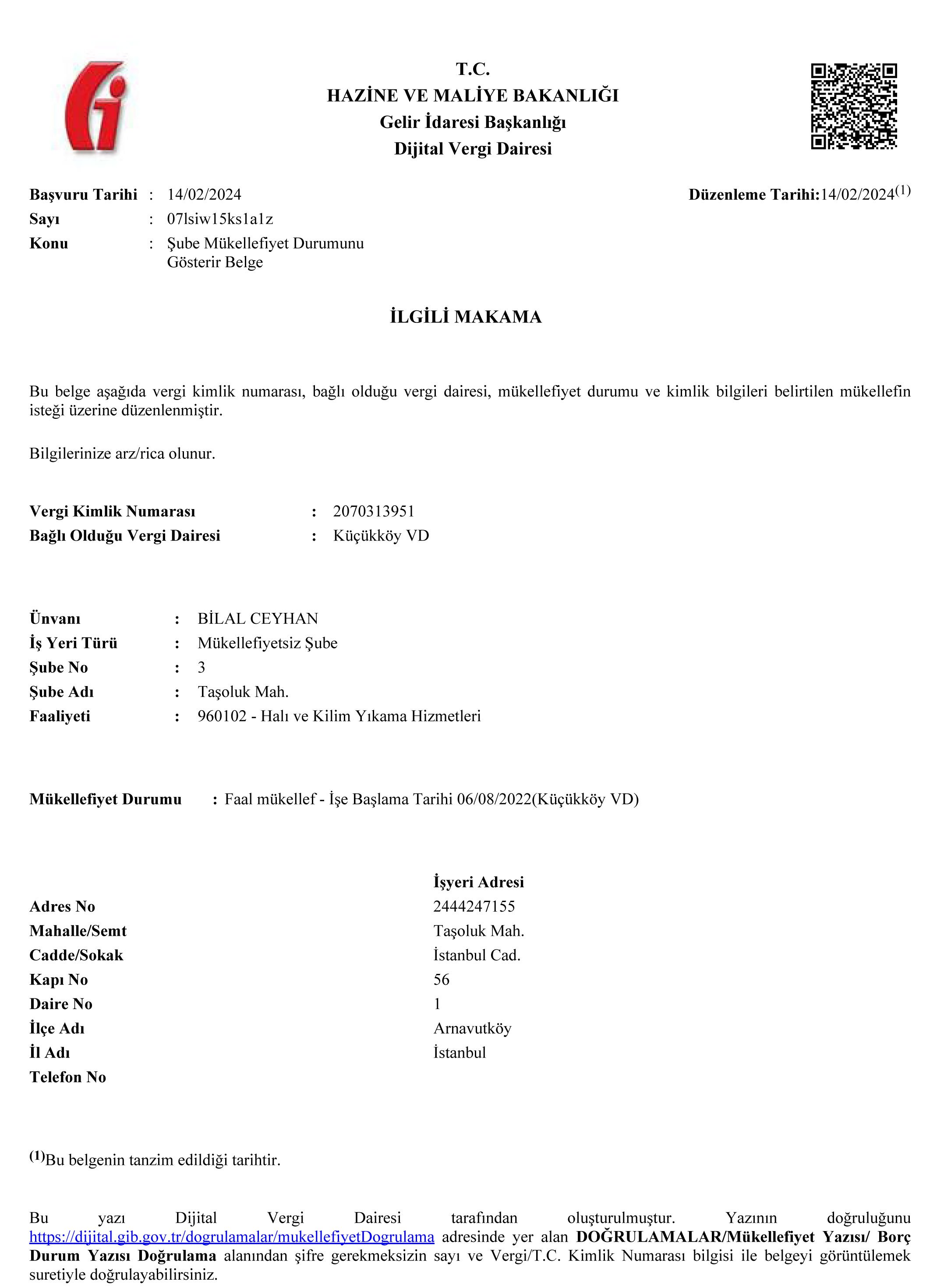FAALİYET BELGESİ