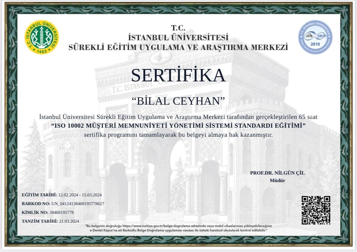 Firmamıza ait tüm sertifikaları buradan inceleyebilirsiniz.